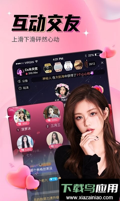 平台提供新颖的互动玩法与功能,让用户能够近距离接触心仪的主播,欣赏她们优美的舞蹈与动人的歌声。在这里,你可以进行约玩互动、赠送心意,也可以基于地理位置发现附近好友、发起线下见面;还能与主播实时聊天、分享心情,体验真人视频直播带来的欢乐,类似在社交平台上结识朋友、发展关系的感受,是一款真正专注于直播交友与社交互动的软件。