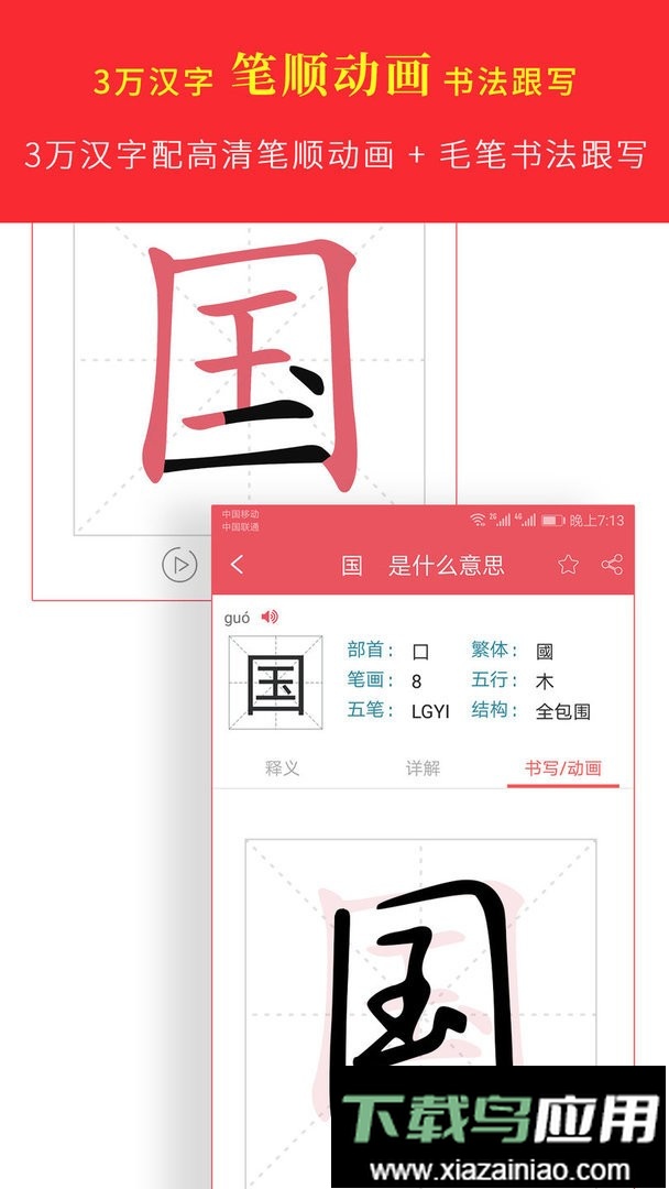 5. 常用汉字配备笔顺动画与书法跟写演示,由专业播音员录制发音;