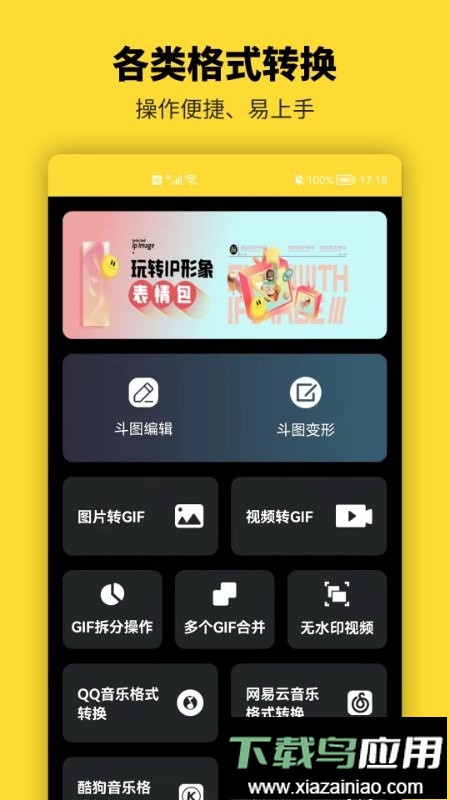 这款软件专为制作表情包和动图设计,是聊天斗图的实用工具。它包含各种搞笑与动漫表情包,同时支持用户自制表情;制作完成后,可以一键转发至微信或QQ等社交平台。