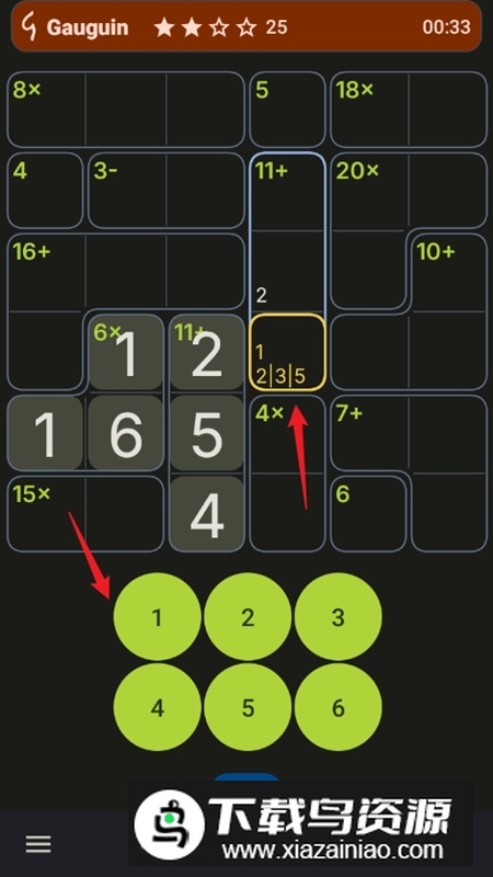 Gauguin手机版是一款融合逻辑推理与数字运算的趣味解谜游戏,它在经典数独玩法基础上增添了更多灵活变化。游戏使用1至6的数字范围,玩家需通过加减乘除四种基本运算,将数字填入不同形状的格子内,同时保证每行每列的数字都不重复,考验思维与计算能力;喜欢这类益智挑战的玩家不妨在本站下载体验。