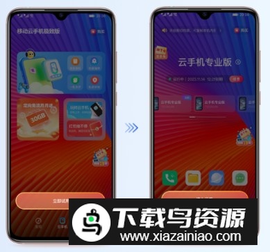在应用内找到【云手机】页面,点击“立即试用”按钮,完成登录后选择“进入”即可开始使用云端虚拟手机。
