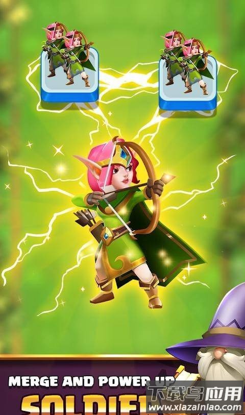 核心玩法围绕合并升级展开,将相同的防御塔合并就能让它们的实力获得提升。