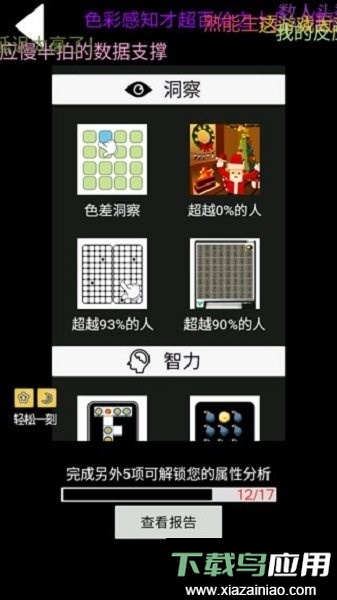 3、完成多个阶段的答题考察后,系统会生成一份专属的脑力属性分析报告。