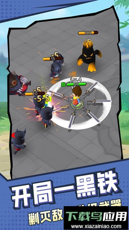 这是一款充满趣味的休闲割草游戏,你将踏上崭新的冒险旅程。游戏内准备了丰富多样的地图,玩家需灵活走位穿梭于敌群之中。玩法直观且富有挑战,你需要挥舞手中巨剑击倒所有来袭的对手方能通关;击败场景中出现的强力隐藏首领,更有机会获得稀有武器奖励。