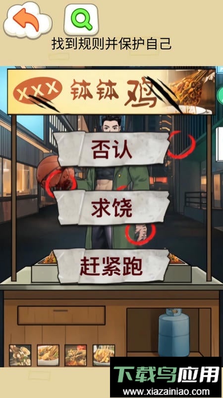 这是一款休闲益智游戏,核心在于从复杂规则里提取关键信息,帮助玩家在危机中做出正确抉择;务必小心应对公鸡怪人的各种提问,避免选择错误答案。