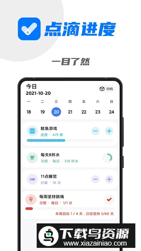 点滴进度最新版本是一款设计简洁的进度管理应用,它避免了繁琐的操作步骤,专注于帮助用户轻松追踪各项任务的完成情况。应用内清晰展示进度、计数与目标等关键数据,上手迅速且日常使用十分便捷,所有功能均可免费体验,感兴趣的朋友可以下载试试。