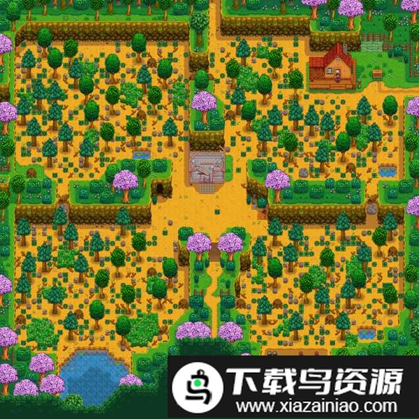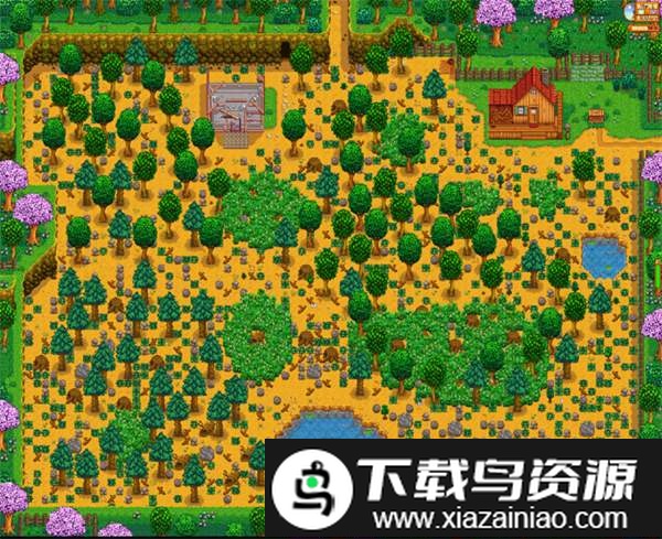 地图上分布着能产出浆果的灌木丛,部分树木可以被砍伐。在地图西侧区域,你可以定期找到八个可再生的大树桩以获取硬木,并能采集到随季节变化的野生物品,例如春天的羊肚菌、夏天的甜豌豆、秋天的各种蘑菇等;此处特殊的杂草被清理后总是会掉落混合种子。