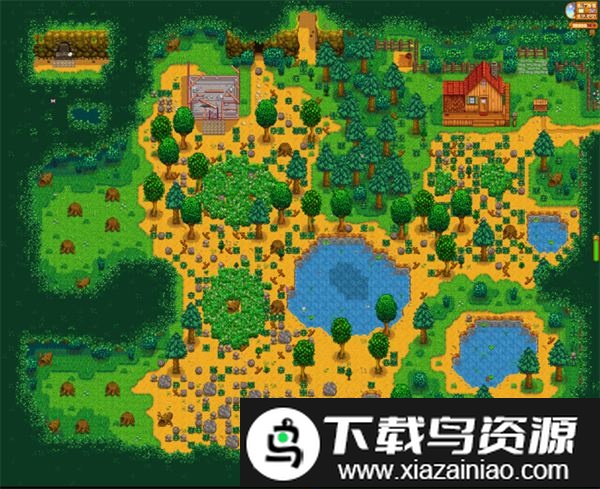 地图内可耕种的土地面积最为广阔,除了正下方与右侧的两个小池塘外,绝大部分区域都适合耕作,是专注于种植与畜牧的理想选择。