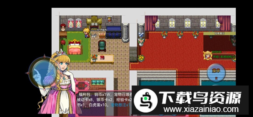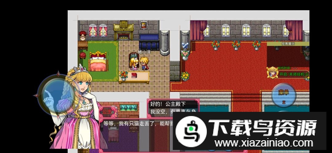 选定被动后从出生点出门,向右上方移动进入公主房间,接取她的任务。
