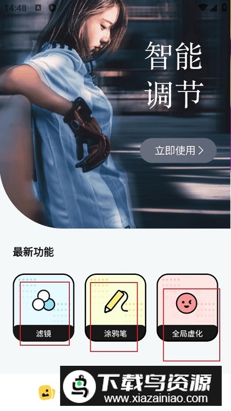 3. 在主界面中,你可以调整滤镜、使用涂鸦笔或设置背景虚化等效果。