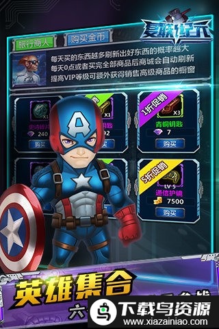 2、英雄集合,六位复仇者联盟成员可供收集与培养。