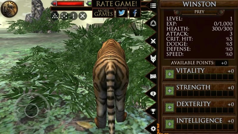 通过捕食猎物、躲避天敌、照顾家族、完成任务来积累经验;每次升级都会增强动物的生命值与攻击力,同时获得点数用于提升各项属性,并扩展背包容量。