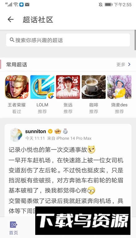2、在搜索栏输入超话名称关键词查找对应超话入口;