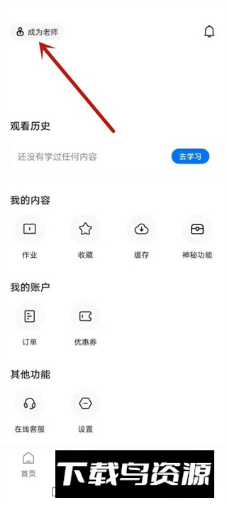 在个人中心界面,选择左上角“成为老师”入口;