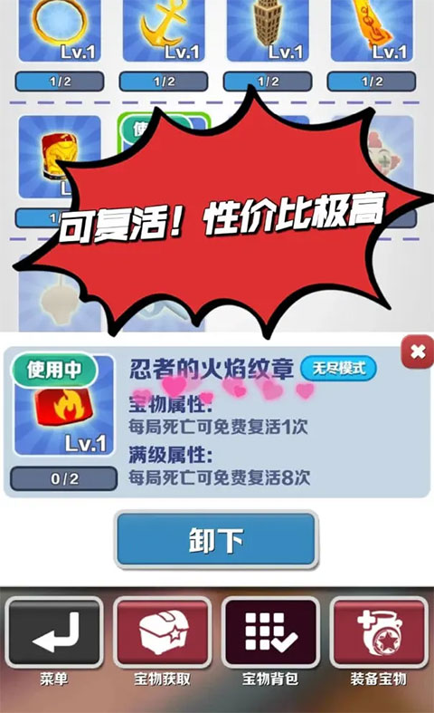 推荐携带宝物组合:增加积分、定时启动滑板及提供一次复活机会的宝物各一件。