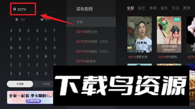 5. 或者返回主界面,点击左侧的搜索图标,输入cctv关键词,即可列出所有相关的央视直播频道。