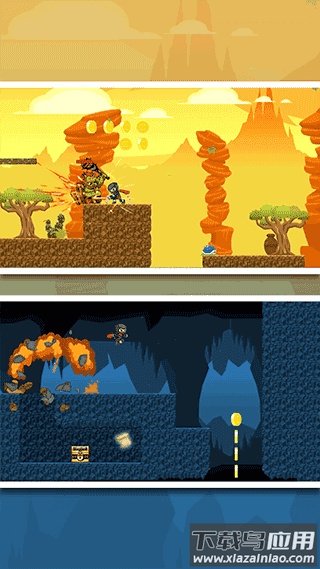 1、游戏包含四个主题鲜明的冒险世界,虚拟按键操控直观,横版画面展现丰富细节。