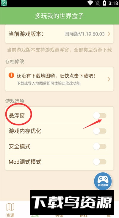 3.成功开启悬浮窗功能后,点击页面右下角的启动游戏按钮即可。