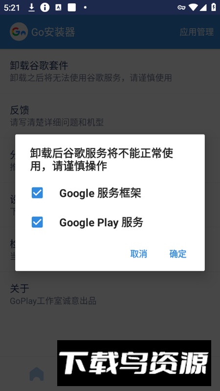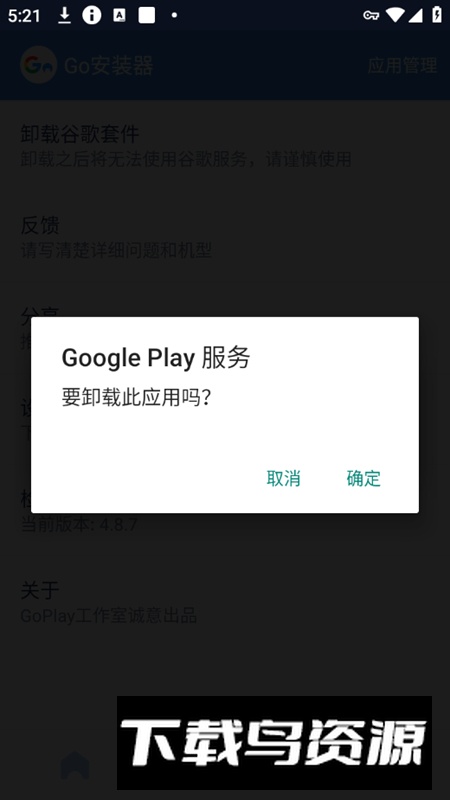 最后确认提示,即可一键完成谷歌服务框架的卸载。
