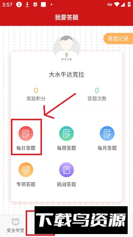 2. 在页面中找到答题入口,点击每日答题选项;