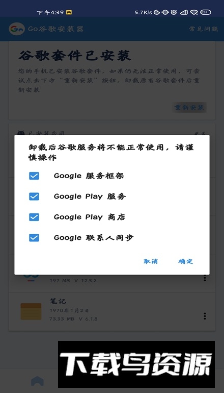 它能一键安装谷歌基础框架、核心服务与官方应用商店;