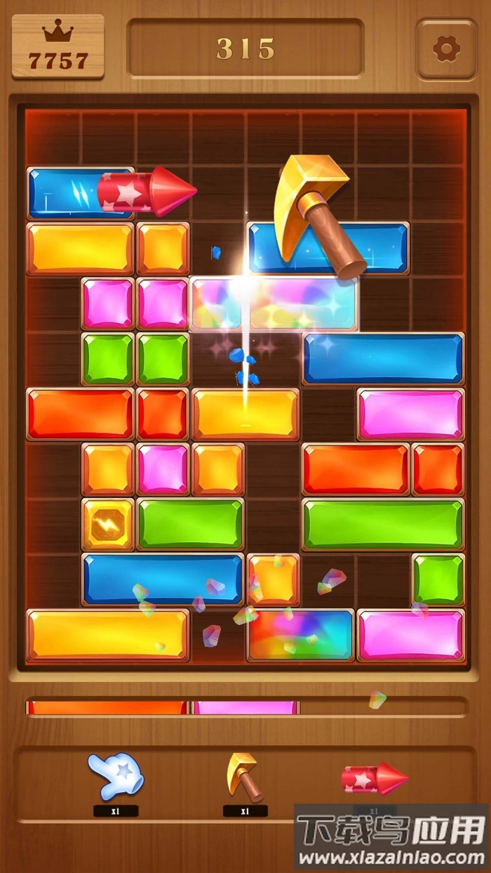继续移动黄色或蓝色等方块,将相同颜色的宝石组合在一起,即可消除并得分。
