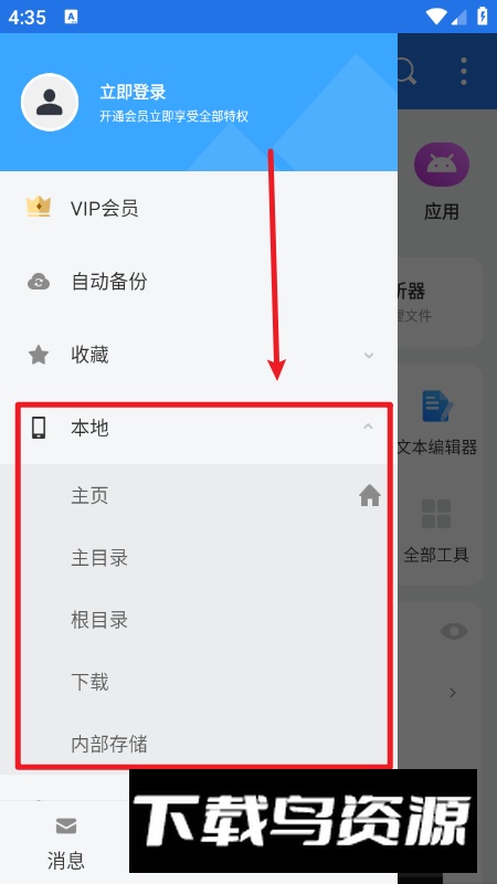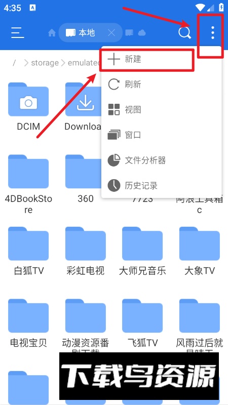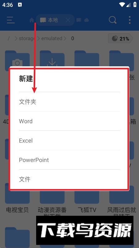2、选择本地存储,进入需要创建新文件夹的目标位置;