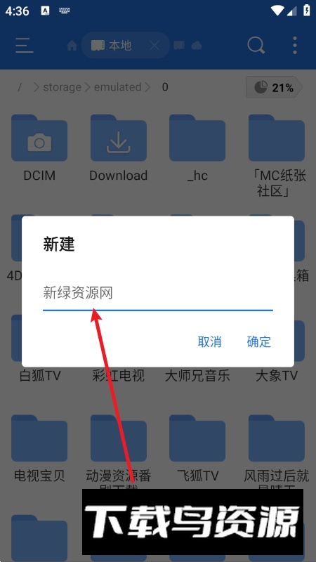 5、为文件夹输入一个名称,最后点击确认即可完成创建。