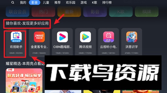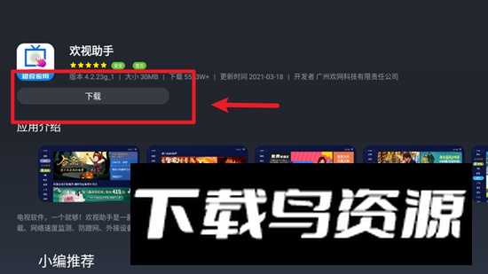 3. 点击下载欢视助手;若电视自带商店未提供,可从本站获取最新安装包,通过U盘安装至电视。
