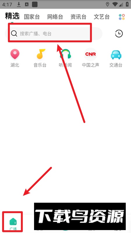 2、点击“广播”栏目,进入后选择搜索功能。