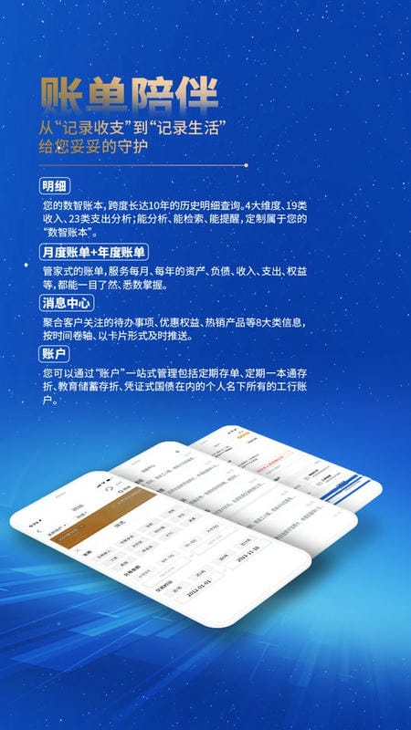 “我的明细”功能,是您的智能数字账本,支持查询长达十年的历史交易记录;“消息中心”聚合了优惠权益、热销产品等八大类信息,按时间线以卡片形式推送;月度与年度账单,提供管家式的账务管理服务。