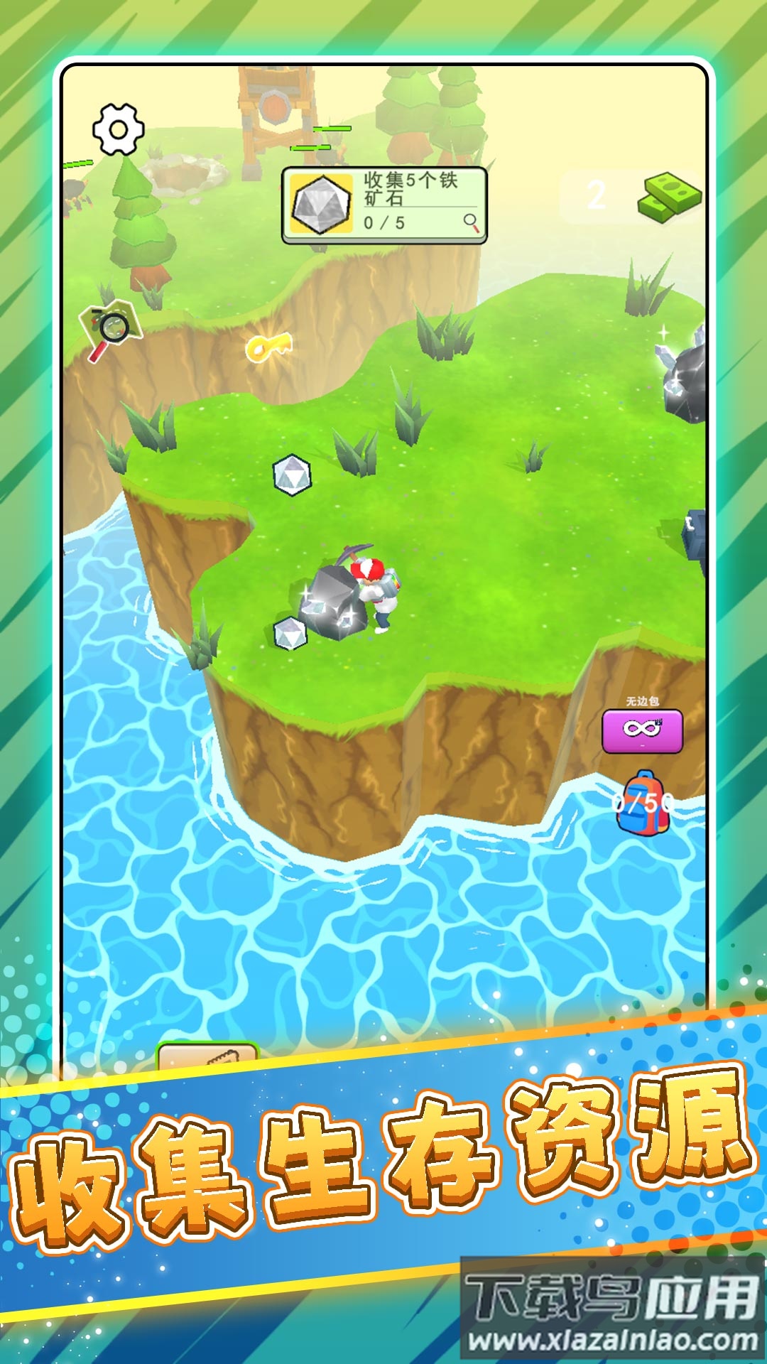 这是一款以荒野生存为核心的冒险游戏。玩家将置身于广阔的岛屿世界,通过砍伐树木、挖掘矿石来收集各种必需的材料。利用工作台,你可以将这些原材料加工成实用的工具,或是建造起属于自己的栖身之所。游戏中你需要应对怪物的威胁,管理好背包中的物资和武器的损耗。通过交易物资换取金币,能帮助你强化装备或前往未知地带。整体采用明快的卡通风格,融合了生存挑战的紧张感,对钟情于冒险与建造的玩家很有吸引力。