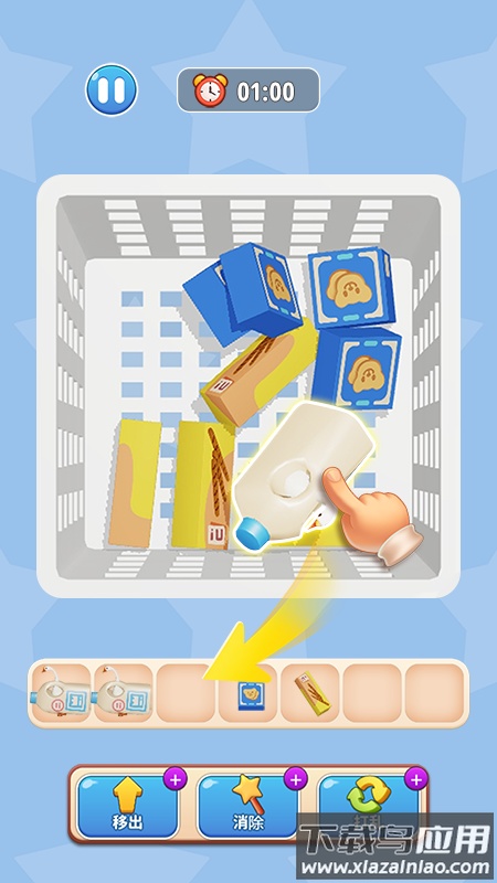 2、独创的“七格收集栏”消除规则,区别于常见的网格滑动三消,需要玩家主动规划物品放入的顺序,策略深度更足,操作互动感更强。