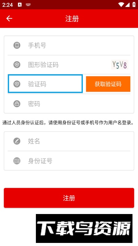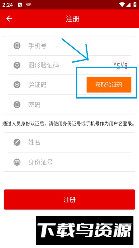 2、进入注册页面,填写个人手机号码,随后点击“获取验证码”按钮。