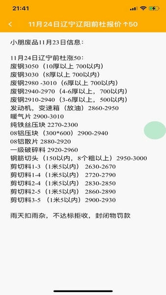 小朋废品app是专注于各类金属材料及废品回收的专业平台,用户可根据自身需求在平台内搜索相关信息,该应用还提供最新的金属行业实时资讯与市场行情报告,为用户处理废钢、废铝、废铜等金属回收事务提供便利。