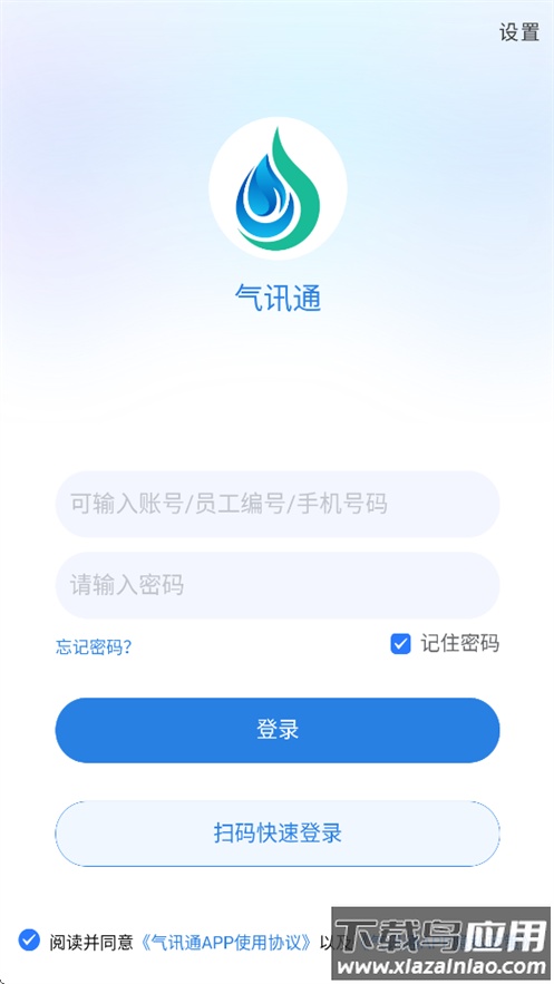 安装并打开气讯通app,阅读服务协议与隐私政策后点击同意接受。