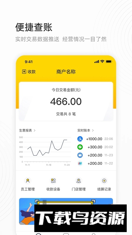 2.快速生成收款码:商户可一键创建专属收款二维码,方便顾客随时扫码付款;