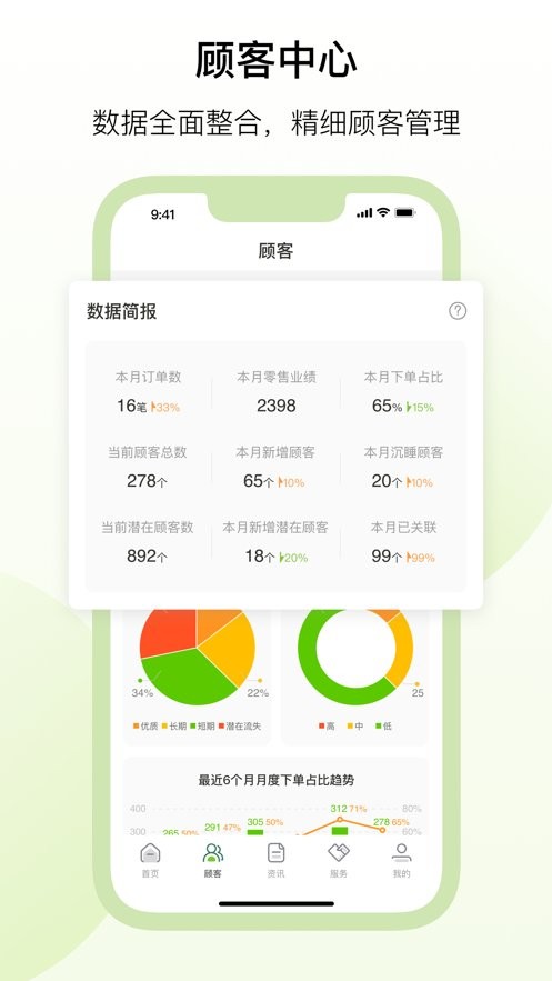 借助莱秤工具辅助拓展新客户;对健康数据进行专业化分析;全面整合线上信息,实现顾客的精细化管理。