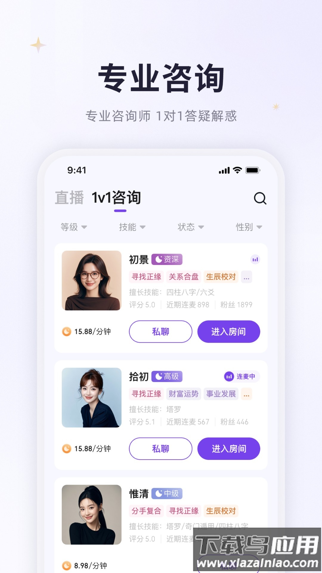 【专业咨询师在线直播】咨询师会围绕特定主题进行直播,深入探讨实际案例。每天都有免费直播开放,你可以选择公开连麦或匿名一对一沟通,获得针对情感问题的专业剖析与建议。