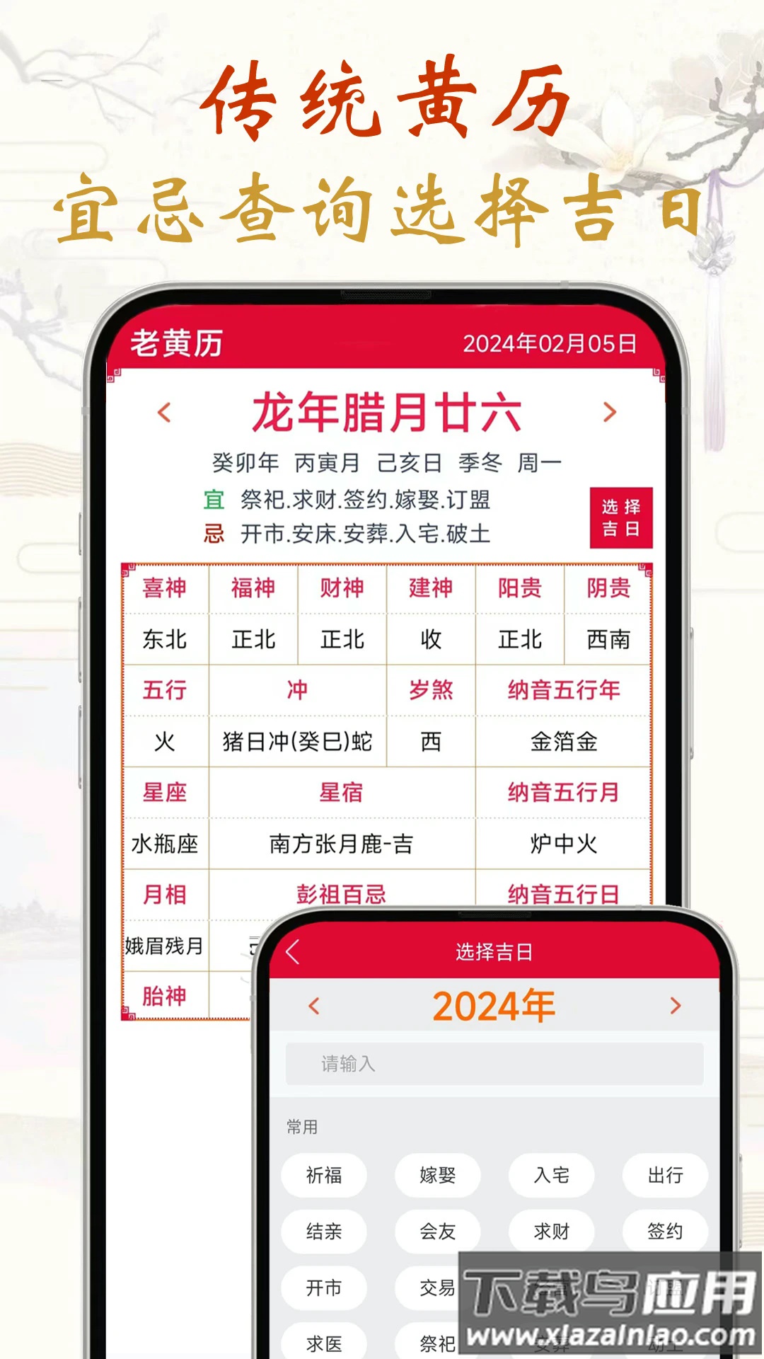 传统黄历功能,方便进行宜忌查询与吉日选择。