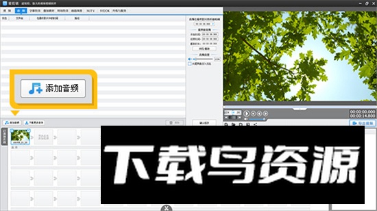 3、视频添加完成后,在“音频”面板中点击“添加音频”按钮,可以为视频配上背景音乐或合适的音效。