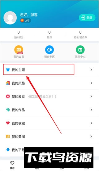 3、在个人页面中,选择“我的主题”选项;