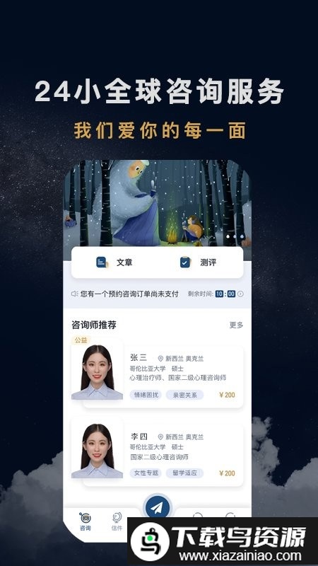 在咨询模块中,你可以阅读心理健康相关文章并进行专业测试;当你需要心理支持来应对困惑时,这一模块能提供切实的帮助。
