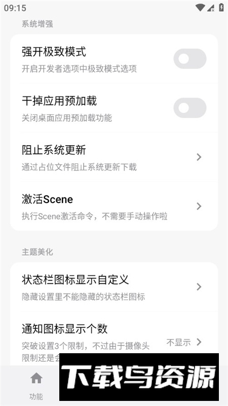 系统界面调节:原生界面调节工具,支持状态栏图标自定义显示;