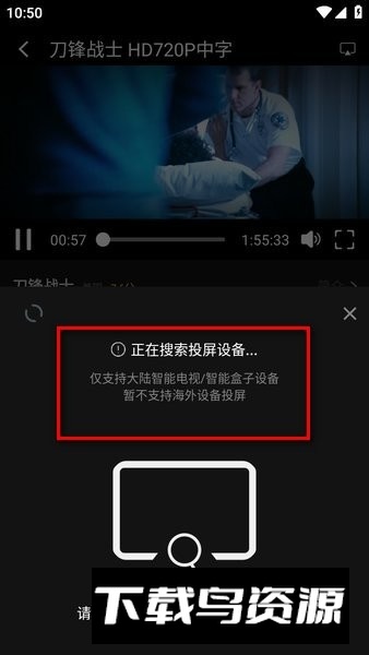3、随后系统会弹出窗口提示“正在搜索投屏设备…”,操作前请确认手机与电视处于同一局域网内。