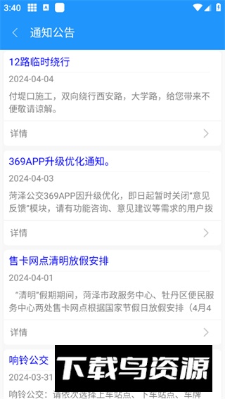 菏泽公交369出行app手机版是专为当地市民设计的公交查询工具,它能够提供实时线路查询、站点导航与到站提醒等功能,帮助用户高效规划行程,让公交出行变得更加轻松便捷;喜欢的朋友不妨在本站下载体验。