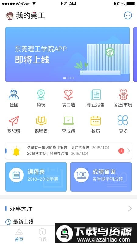 i莞工app是一款面向大学生的校园生活管理软件,如果你正在为大学里繁杂的日常事务感到困扰,无论是社团活动安排、学习课程规划还是各类会议通知,这款应用都能帮助你进行统一整合与管理。它同时集成了多项便捷的校园服务功能,能显著提升在校生活的效率与体验,如果需要就来本站下载吧。