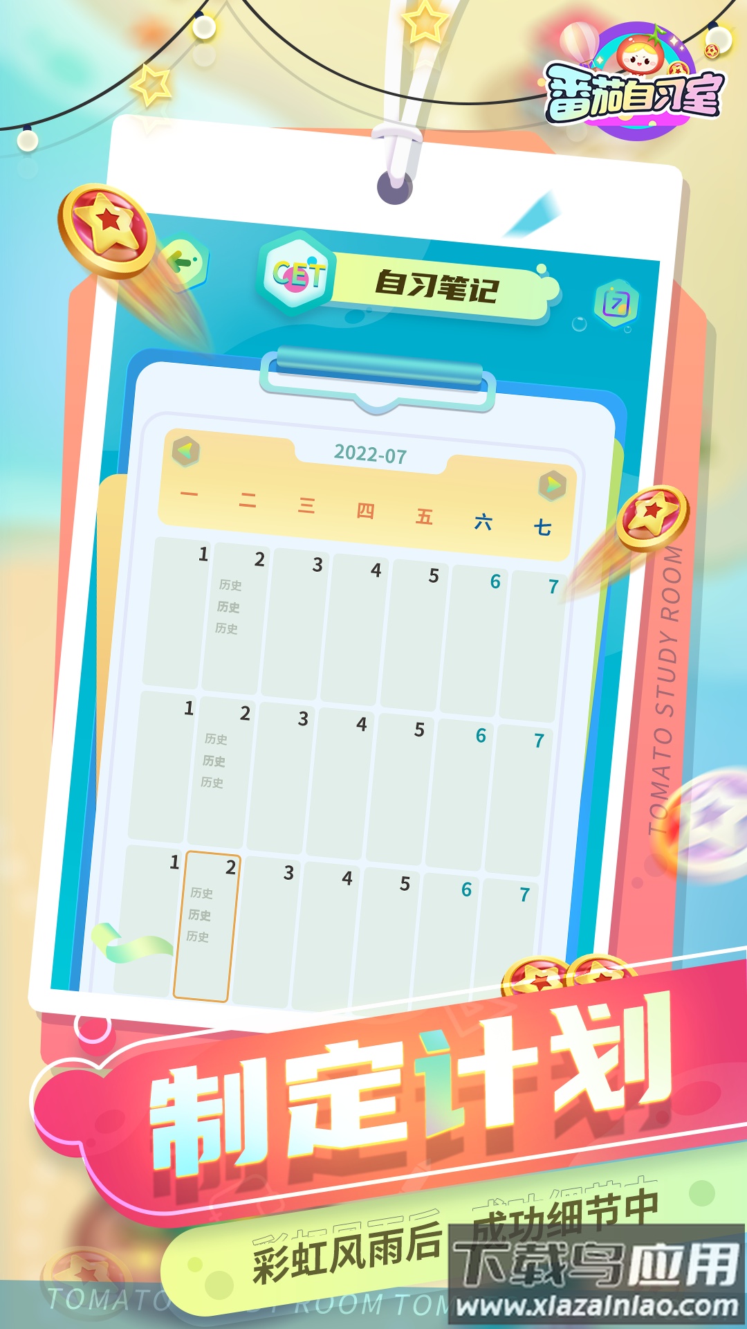 用户能自定义周期计划并设置提醒,也能更换个人角色形象和笔记本皮肤,让学习过程多一点趣味。