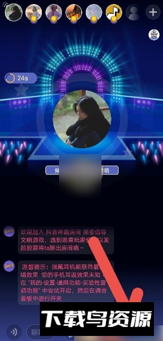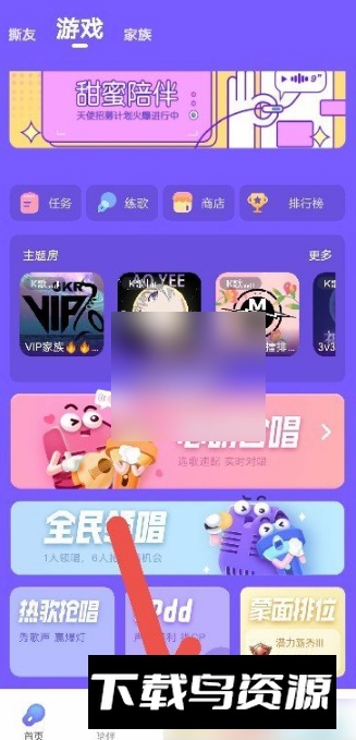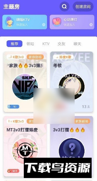 1、启动撕歌应用,进入主题房界面。