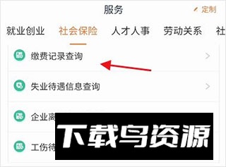 5、在服务列表中找到“社会保险”栏目,点击“缴费记录查询”即可查看详细的缴费信息。